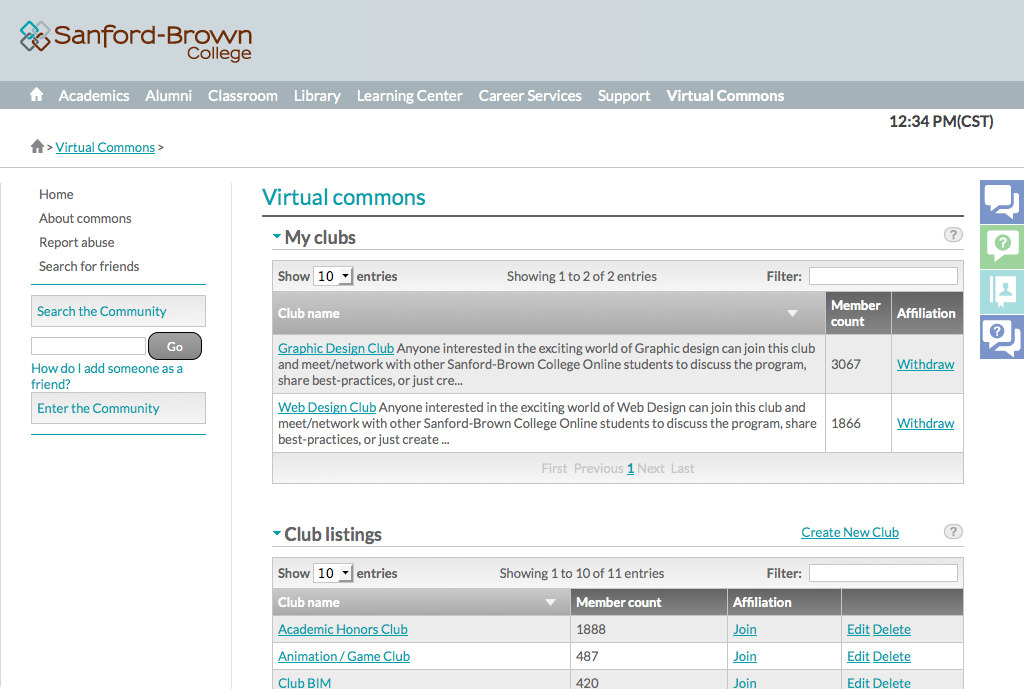 Virtual Commons allows for an in-house social experience that allows you to connect to and work with your peers, social media style. Flag down another student for additional help outside of class, join topic-based groups that interest you, and attend program-specific events.